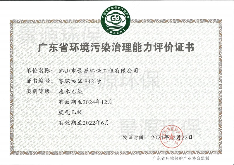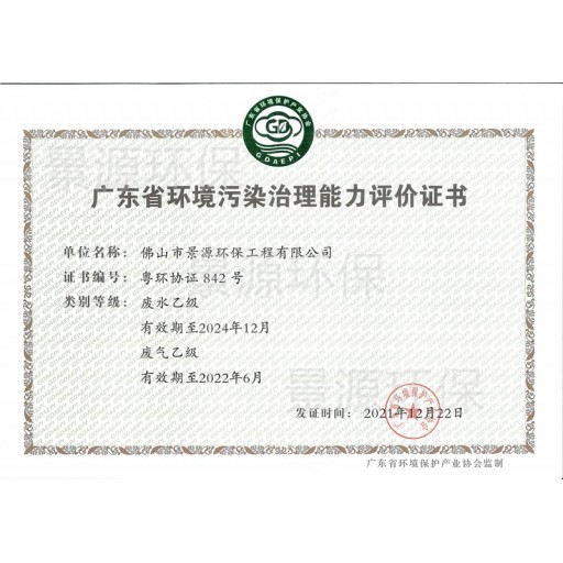 广东省环境污染治理能力评价证书