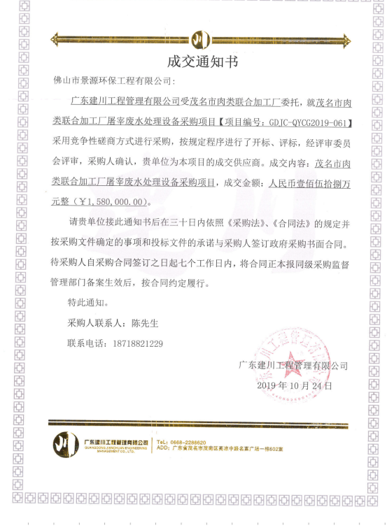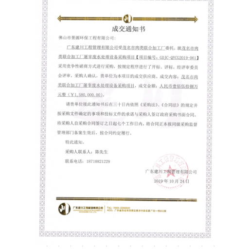茂名市肉类联合加工厂屠宰废水处理设备采购项目